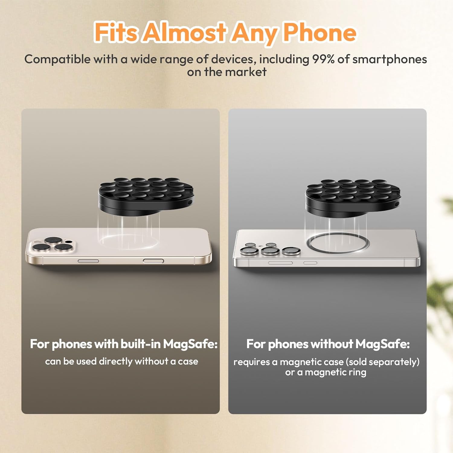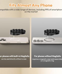 3v1 magnetni nosilec s priseskom omogoča hitro in stabilno pritrditev telefona na različne površine. Idealen za uporabo v avtu, pisarni ali doma.