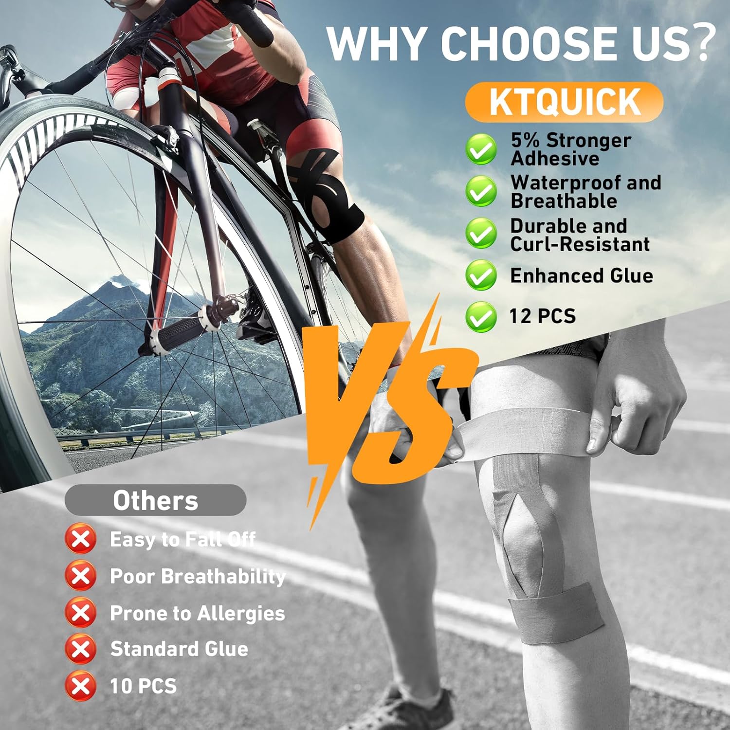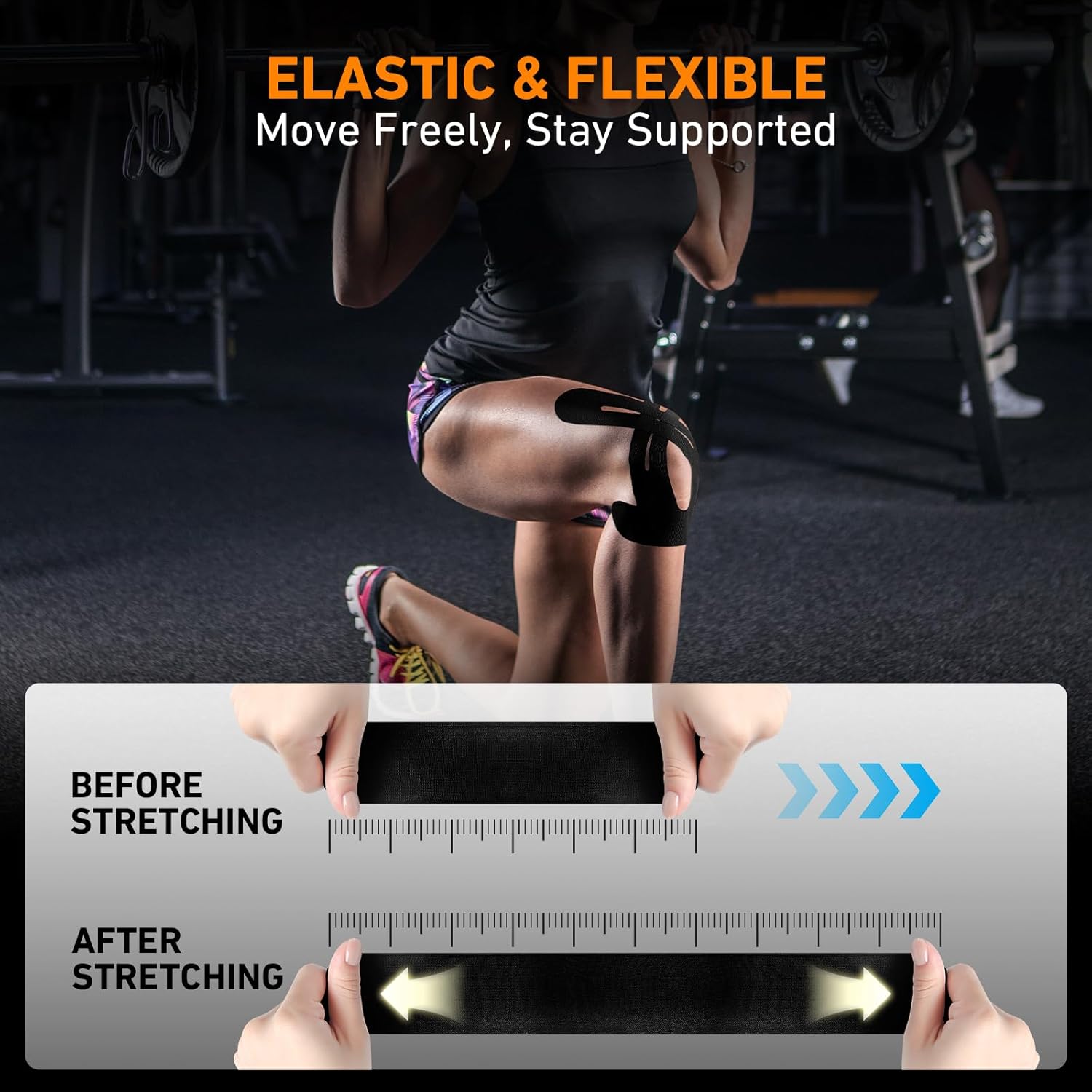 Ker je trak že vnaprej pripravljen za koleno, ga lahko namestite v nekaj sekundah. Ni potrebe po rezanju ali prilagajanju, zato je uporaba zelo praktična tudi doma ali pred treningom. Set vsebuje 10 kosov, kar omogoča večkratno uporabo pri treningu, športu ali rekreaciji.