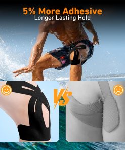 Trak je posebej oblikovan za uporabo na kolenu, zato se popolnoma prilega obliki sklepa. Vnaprej izrezana oblika omogoča hitro in enostavno namestitev brez dodatnega rezanja. Primeren je za različne športne aktivnosti, kjer želite dodatno podporo in stabilnost med gibanjem.