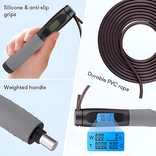 Digitalna preskakovalna vrv je sodoben pripomoček za vadbo, ki združuje klasično preskakovanje z digitalnimi funkcijami za spremljanje napredka. Omogoča ti, da šteješ skoke, spremljaš porabljene kalorije in čas vadbe – vse to na enostavnem zaslonu, ki ti pomaga ostati motiviran in spremljati rezultate vadbe.