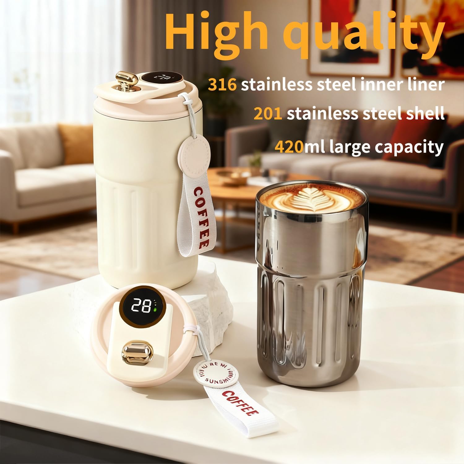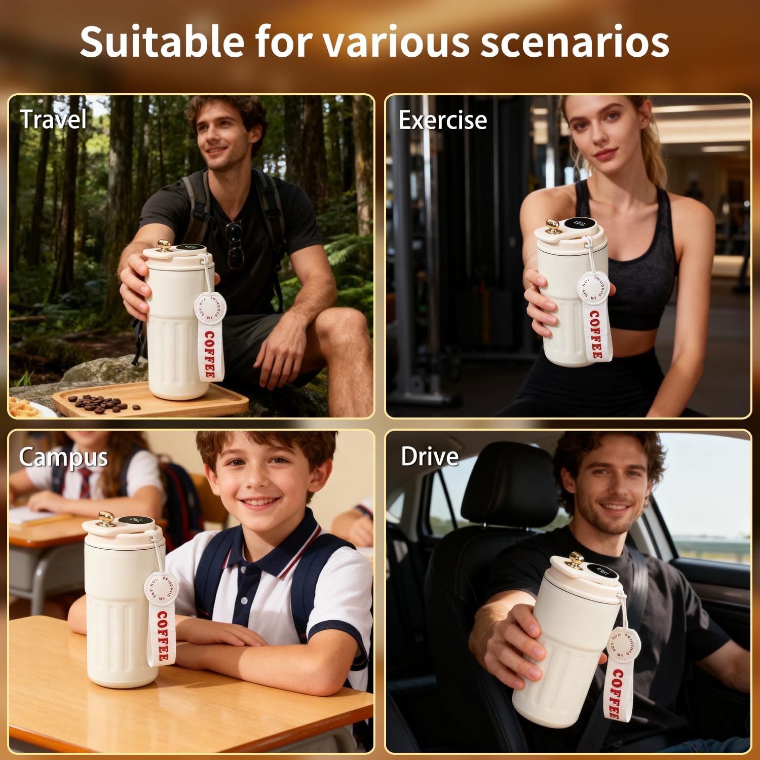 Zaradi kompaktne oblike se steklenica enostavno prilega v torbo, nahrbtnik ali držalo za pijačo v avtomobilu. Primerna je za:, službo, šolo, potovanja, šport, kampiranje Vedno boste imeli napitek pri roki na idealni temperaturi.